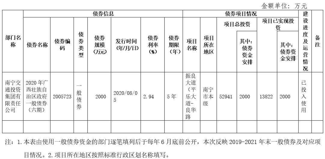 截至2021年末發(fā)行的新增政府一般債券情況表