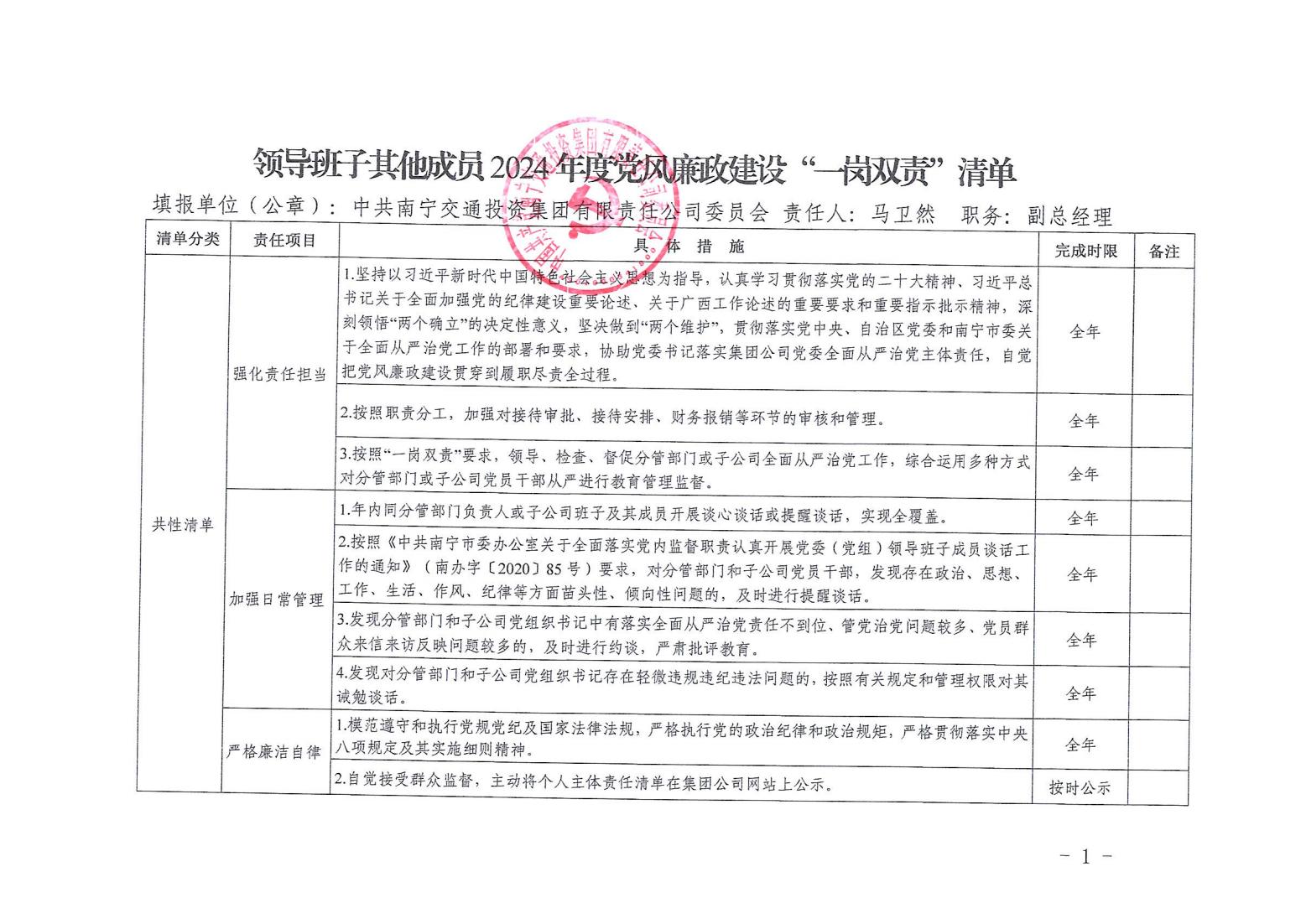 領(lǐng)導(dǎo)班子其他成員2024年度黨風(fēng)廉政建設(shè)“一崗雙責(zé)”清單(六)
