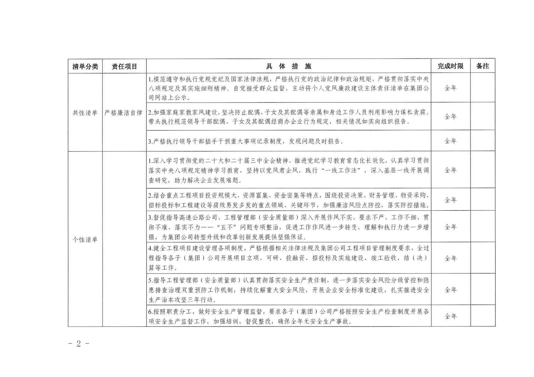 南寧交投集團領(lǐng)導班子其他成員2025年度黨風廉政建設“一崗雙責”清單(二)