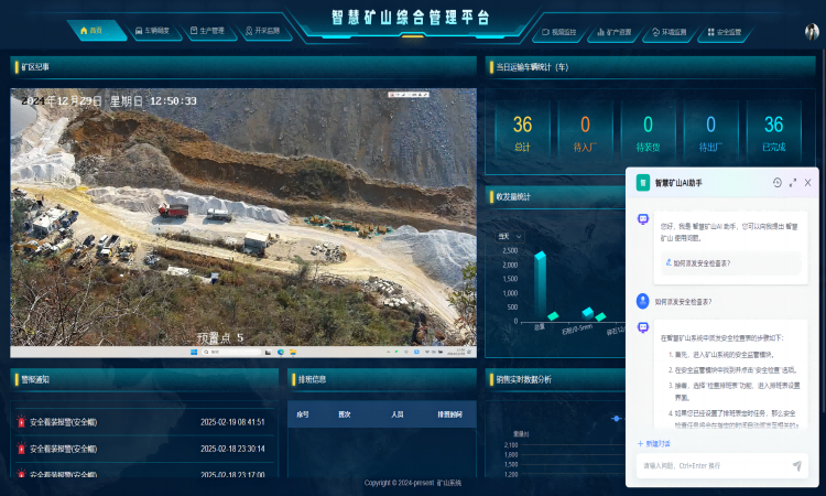 設(shè)備運(yùn)維場(chǎng)景:在生產(chǎn)過(guò)程中,DeepSeek助力生產(chǎn)調(diào)度中樞,通過(guò)深度學(xué)習(xí)模型對(duì)采掘、運(yùn)輸、選礦全流程進(jìn)行自適應(yīng)調(diào)控,實(shí)時(shí)優(yōu)化工藝參數(shù)。系統(tǒng)集成智能風(fēng)險(xiǎn)預(yù)警、AI視頻巡檢及設(shè)備健康診斷模塊,實(shí)現(xiàn)24小時(shí)實(shí)時(shí)監(jiān)測(cè),及時(shí)發(fā)現(xiàn)并處理潛在問(wèn)題,有效降低維修成本,實(shí)現(xiàn)節(jié)能降耗,確保設(shè)備穩(wěn)定運(yùn)行。