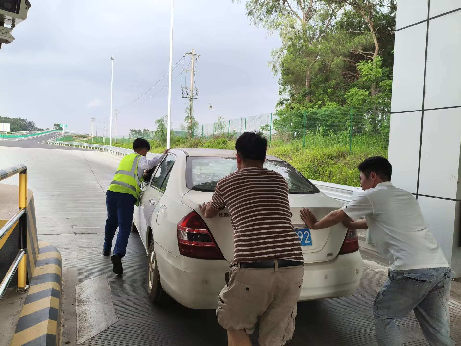 6月11日17時(shí)許,一輛白色轎車在途經(jīng)林橫高速陶圩收費(fèi)站完成繳費(fèi)后突發(fā)故障,引擎無法啟動(dòng)。當(dāng)班收費(fèi)員蔣雨潔與覃新恒見狀立即上前,并在第一時(shí)間將情況上報(bào)監(jiān)控中心,隨后幫助司機(jī)將車輛推至外廣場(chǎng)安全區(qū)域,保障了收費(fèi)現(xiàn)場(chǎng)車輛的順暢通行。此外,收費(fèi)員還主動(dòng)協(xié)助司機(jī)排查車輛故障。在收費(fèi)員的幫助下,車輛順利啟動(dòng),司機(jī)緊握收費(fèi)員的手連聲道謝:“十分感謝你們的幫助,為南寧高速的暖心服務(wù)點(diǎn)贊!”